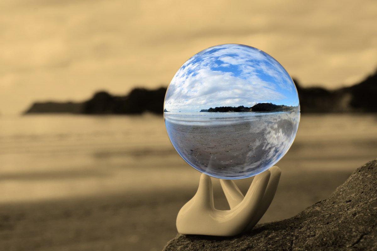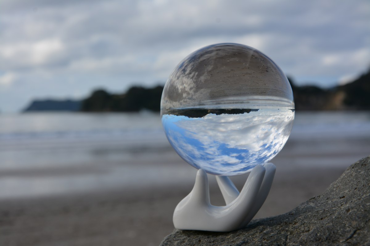 Here is a photo I took of an 80mm Spheralens Crystal Ball at the beach in Whitianga on a rather dull day.